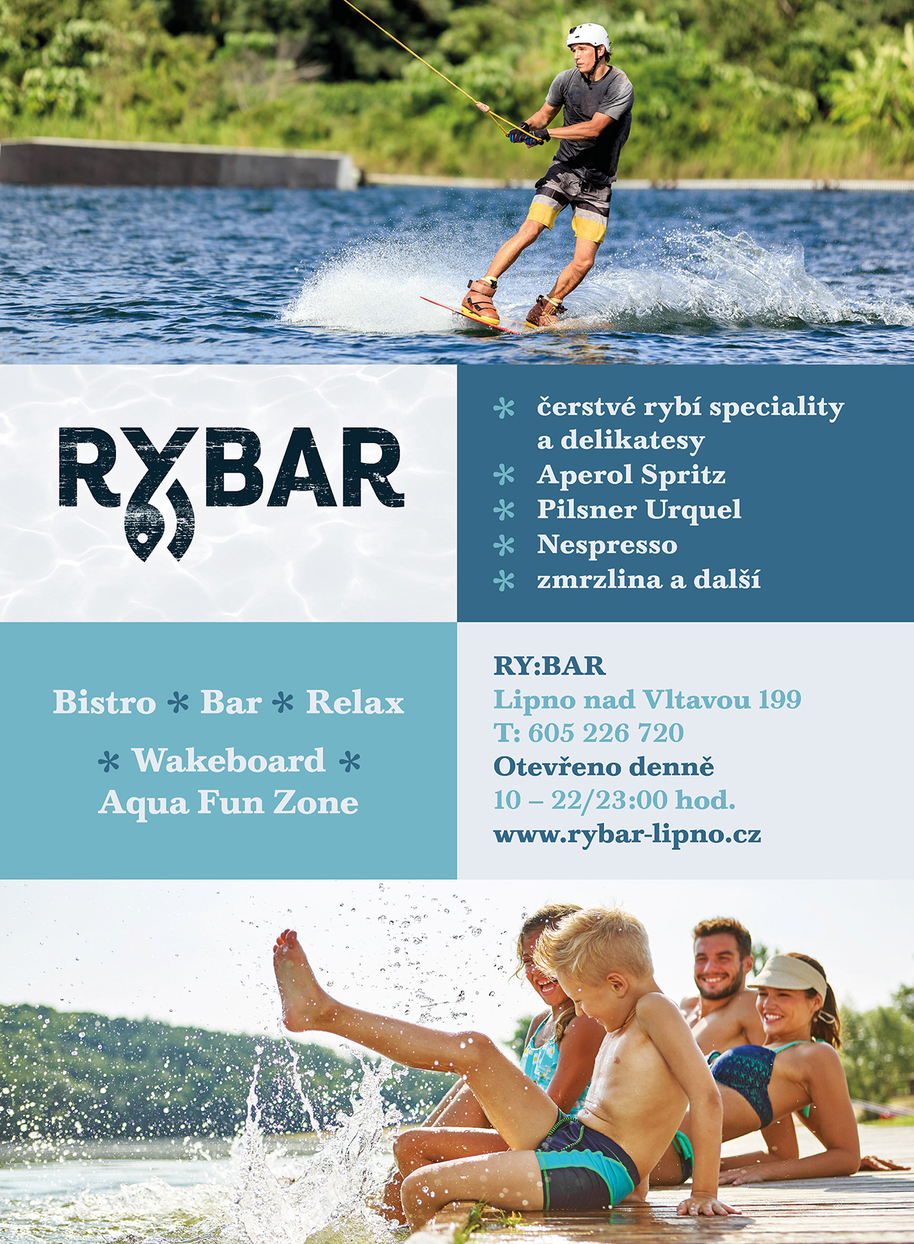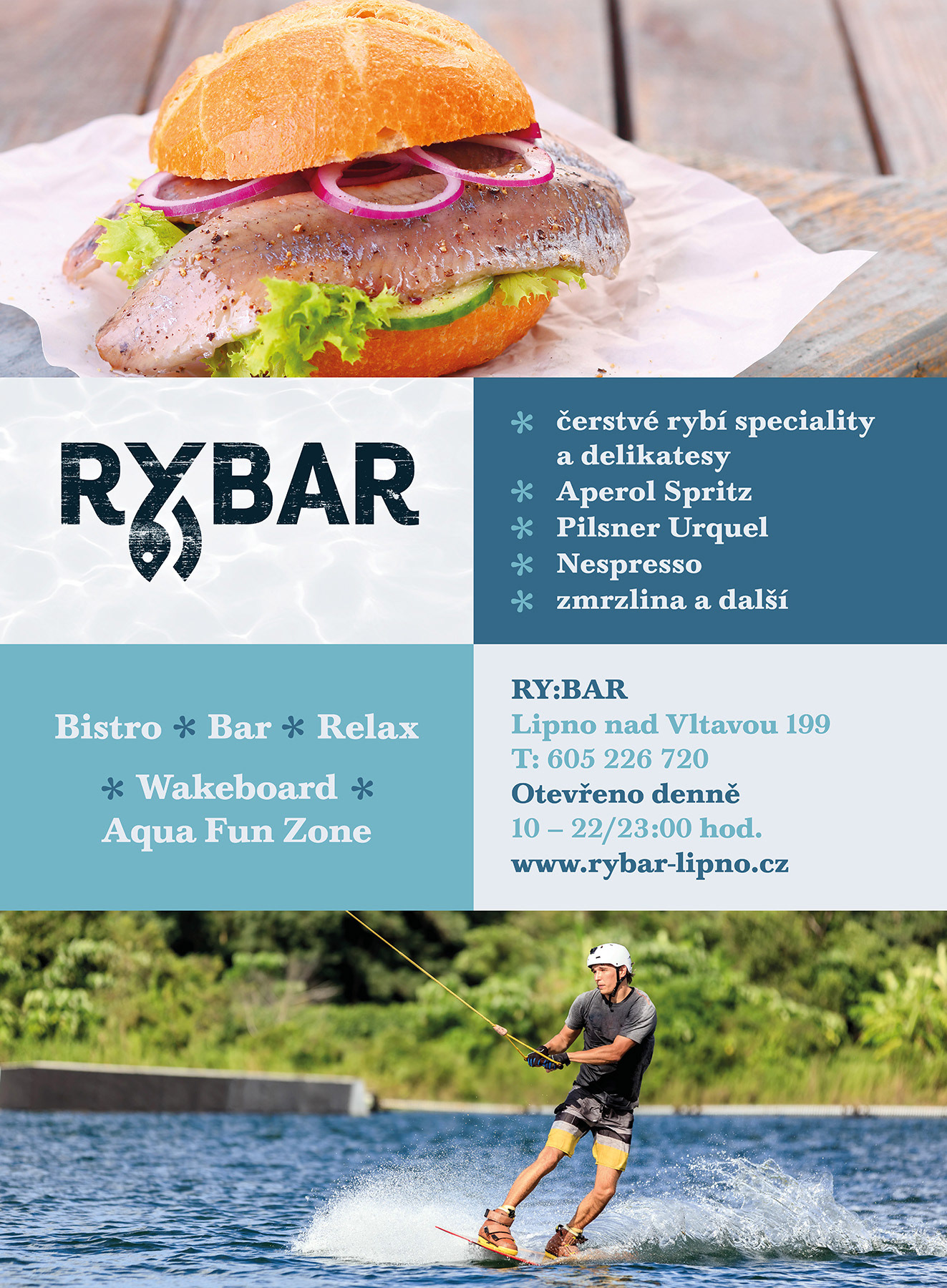 Nový volnočasový areál na Lipně určený návštěvníkům každého věku - to je RYBAR, který si žádal o vytvoření výrazné a osobité vizuální identity. Jejím základem se stalo hravé logo a navazující uvolněný přírodní styl, aby co nejpřirozeněji zapadl do aranžmá přilehlého jezera.