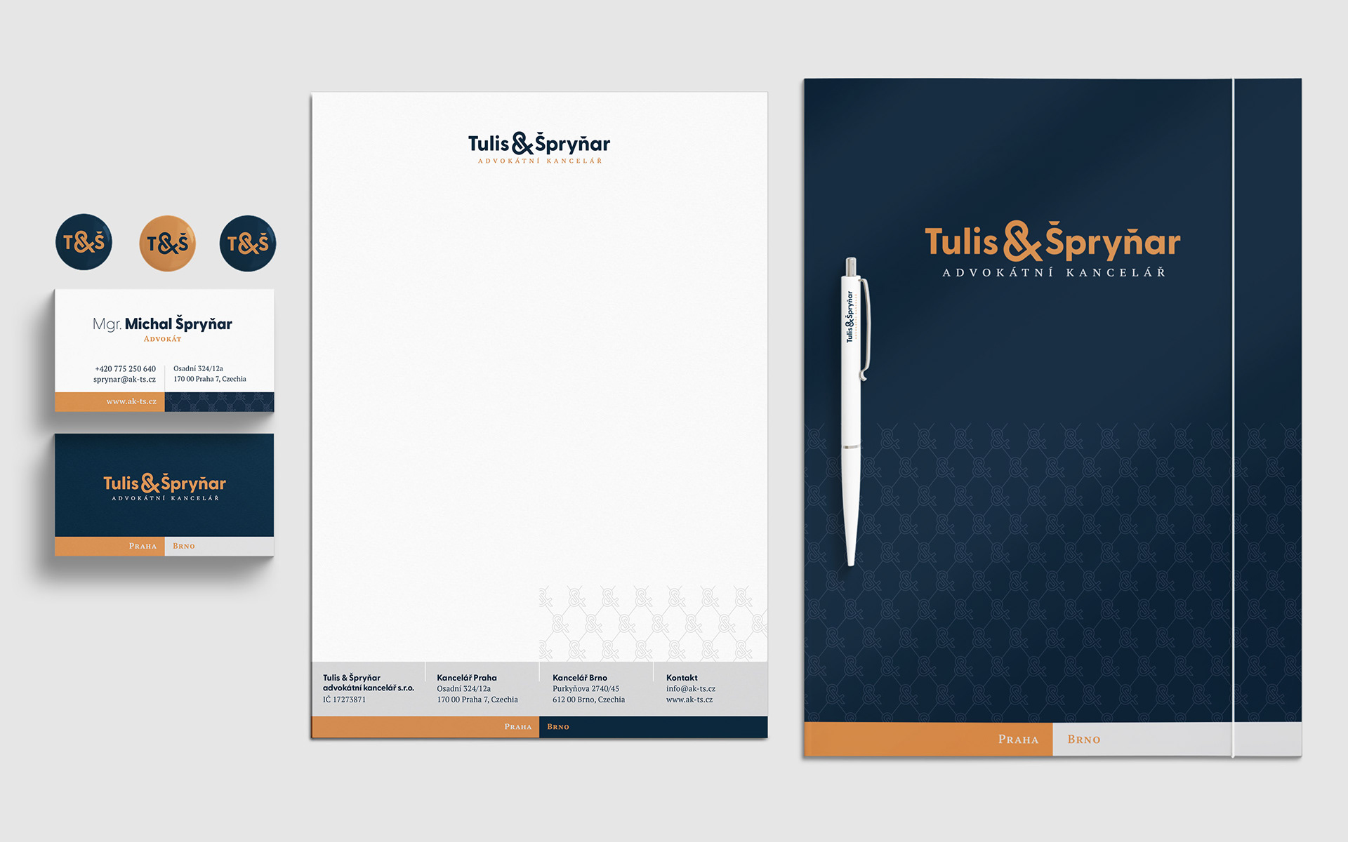 Logo a jednotná vizuální identita advokátní kanceláře.